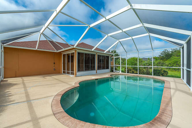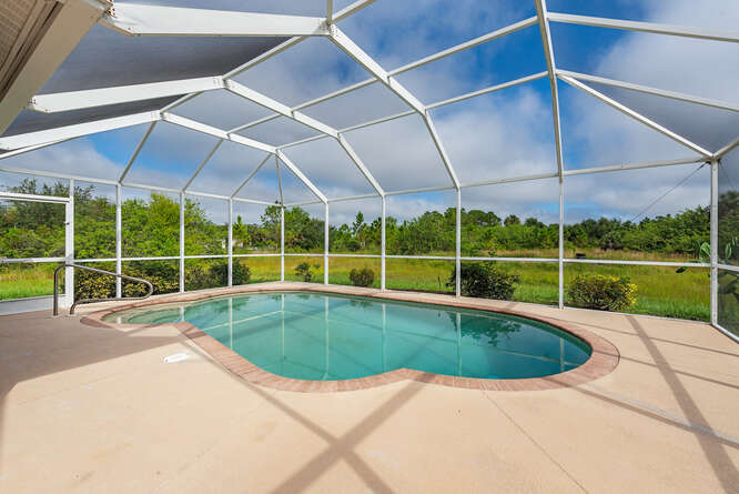 3 bedrooms / 2 bathrooms single family home in a quiet country setting offering serene privacy. Bring your animals and trucks - no HOA! The bright open floor plan has vaulted ceilings and there are tiled floors throughout except bedrooms have hardwood flooring. Freshly painted inside and out ! All new fixtures throughout including new toilet. Very large great room has a bay window. Stainless steel appliances and oak cabinets. Newer A/C installed. Service America included. Master bedroom has a large walk in closet and soaking tub. Full size washer & dryer. Outside enjoy the sun room & screened lanai and gaze out over the Florida landscape. No Smoking. Pets Negotiable.