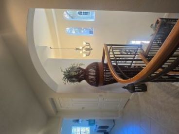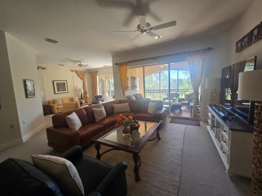 3 bedrooms + den / 3 bathrooms with 2 car garage. 2nd floor unit offers many luxurious upgrades. Nearly 3000 sq. ft under air, this coach home boasts a gorgeous carpeted staircase, high ceilings, carpeted bedrooms, living room, family room, dining room, and tiled kitchen, and bathrooms, and generous amounts of space throughout. Enjoy spectacular lake views from your oversized screened lanai. Beautifully furnished end unit provides light and bright space. Large, open living area with formal dining room. Kitchen boasts gas stove, granite counters, elegant back splash, and stainless steel appliances, with huge pantry space. Master suite with double walk-in closets, garden tub, glass walk-in shower, his and her sinks, and magnificent views. Each bedroom has its own full bath. Generous bedroom dimensions with large closet spaces. Full size washer and dryer in separate laundry room with utility tub. Community offers private heated swimming pool within Cherry Oaks and a spectacular Clubhouse with first-class resort-style amenities for a one-time transfer fee of $750. Water and basic cable and wi-fi are included in the rent. No Smoking. No Pets.