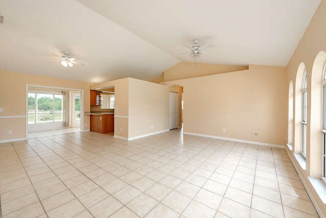3 bedrooms / 2 bathrooms single family home in a quiet country setting offering serene privacy. Bring your animals and trucks - no HOA! The bright open floor plan has vaulted ceilings and there are tiled floors throughout except bedrooms have hardwood flooring. Freshly painted inside and out ! All new fixtures throughout including new toilet. Very large great room has a bay window. Stainless steel appliances and oak cabinets. Newer A/C installed. Service America included. Master bedroom has a large walk in closet and soaking tub. Full size washer & dryer. Outside enjoy the sun room & screened lanai and gaze out over the Florida landscape. No Smoking. Pets Negotiable.