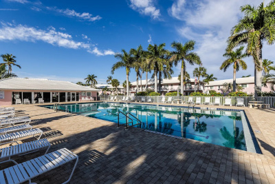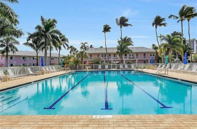 Efficiency / studio with 1 bathroom. Fantastic Marco Island location, central to everything and just blocks to Residence Beach. This second floor condo overlooking the pool area is located in a walk up building. Condo highlights include tile flooring throughout, ceiling fans and window treatment plus a Murphy Hide-Away bed. Appliances include refrigerator, stovetop and microwave. Common area washer and dryer. One assigned parking space. Community amenities feature an olympic size lap pool and beautifully landscaped grounds. Restaurants, banks and shopping within close proximity. Water, basic cable and wifi included in the rent. No Smoking. No Pets.
